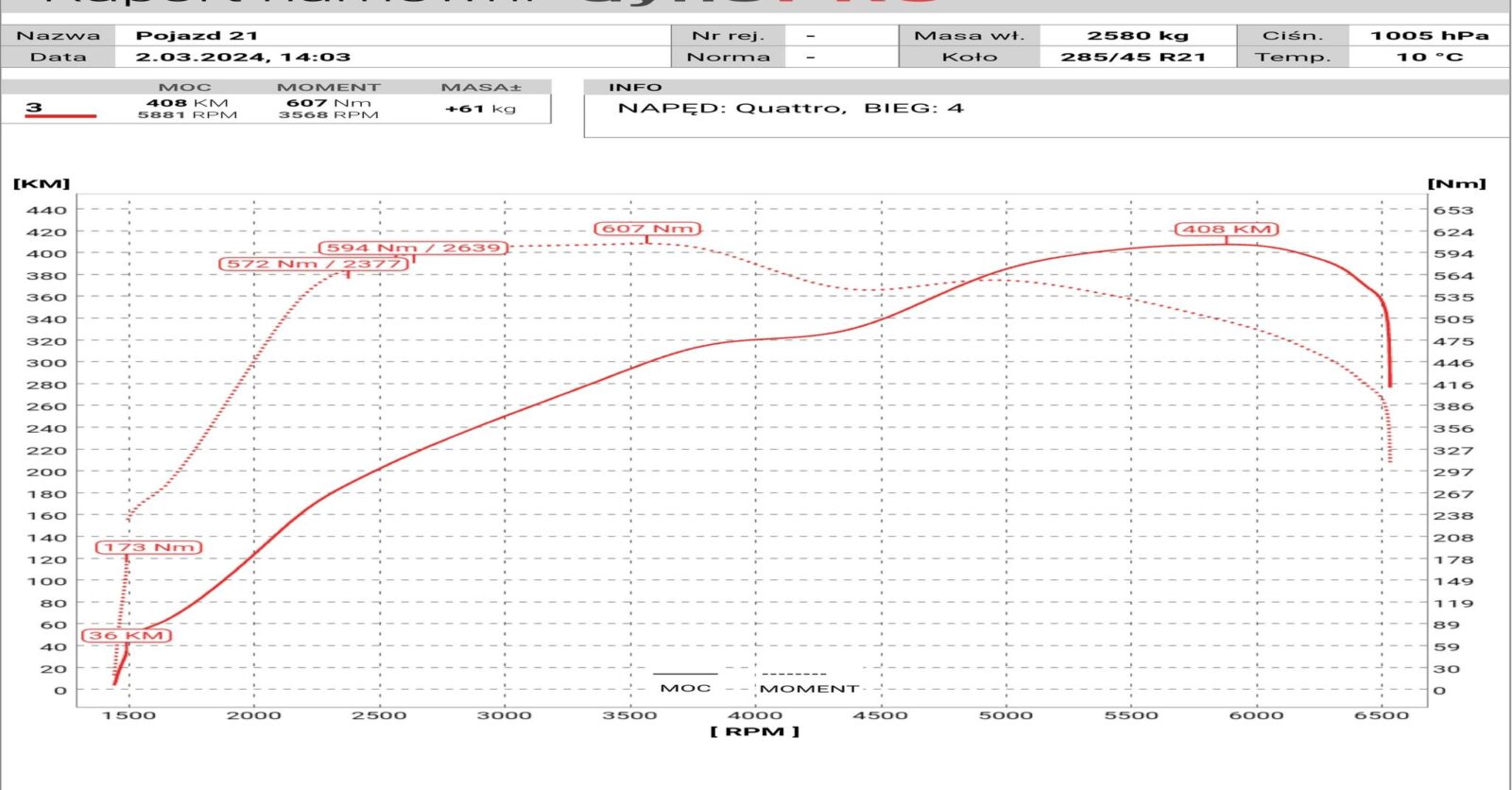 Silnik został dostrojony do Stage 1, adaptacje przeprowadzone, skrzynia zyskała nową dynamikę,